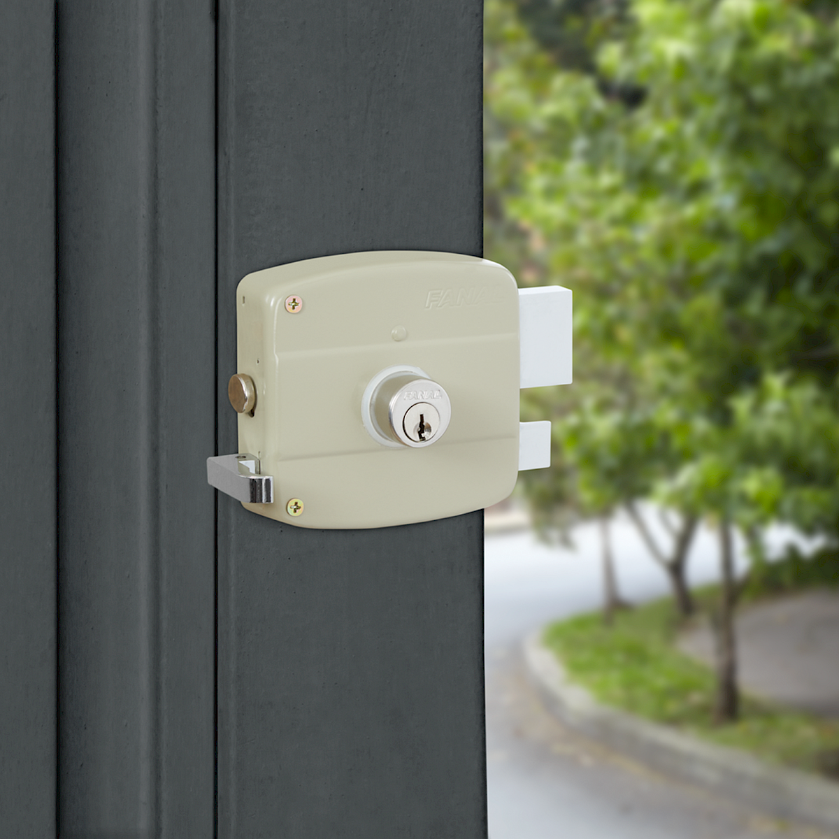 Cerradura de Sobreponer 101 Sencilla Derecha · Cilindro Suelto · Beige
