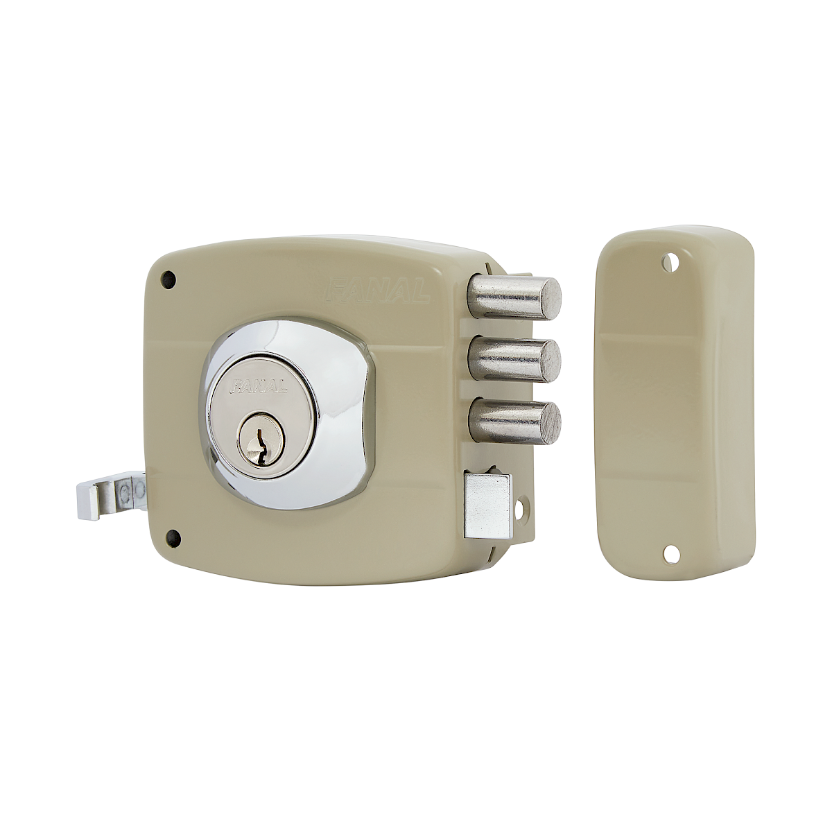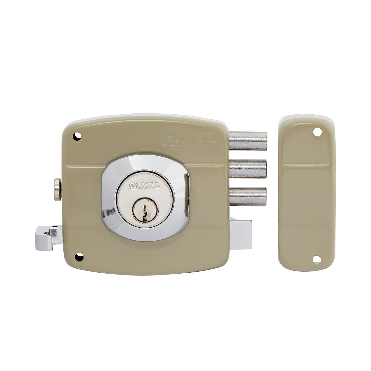 Cerradura de Sobreponer 101 Triple Derecha · Cilindro Suelto · Beige